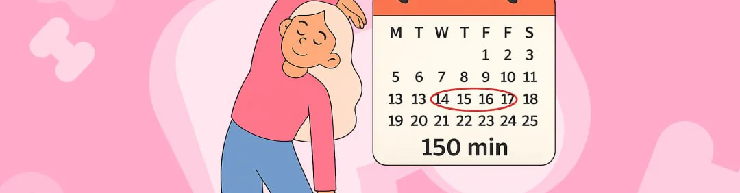 Хотя силовые тренировки не входят в эти 150 минут, организации здравоохранения рекомендуют уделять им время дважды в неделю. Хватит и 20–30 минут дома: приседания на стул, отжимания от стены или кухонной столешницы, тяга резинкой, планка, подъёмы на носки, мостик на ягодицы.